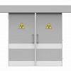 Дверное полотно состоит из стального сварного каркаса, лицевых панелей, слоя защитного материала (свинец), внутреннего звукоизоляционного заполнения и окантовки из травмобезопасного алюминиевого анодированного профиля.